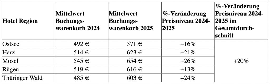 Im Schnitt zahlen Reisende für die Oster-Auszeit im eigenen Land 595 Euro, im Jahr 2024 lagen die Ausgaben für Kurzreisen noch bei 469 Euro. Es zeigt sich, dass die Deutschen 2025 für Osterreisen von zwei bis vier Tagen im eigenen Land im Mittel 20 Prozent mehr zahlen als noch im Jahr 2024.
